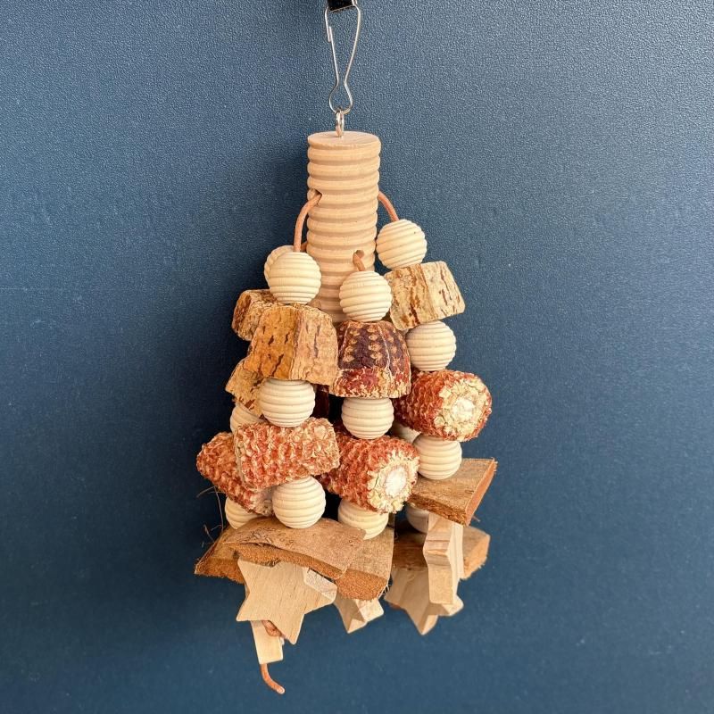 マホガニーポッド、コーン、ココナッツ…と様々な素材があり、小型インコちゃんでも長持ちするおもちゃになります!