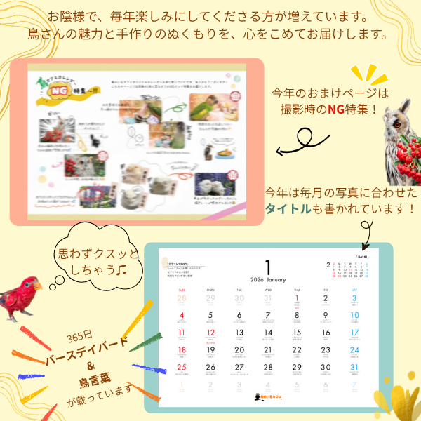 「鳥のいるカフェオリジナルカレンダー2026」がついに完成!